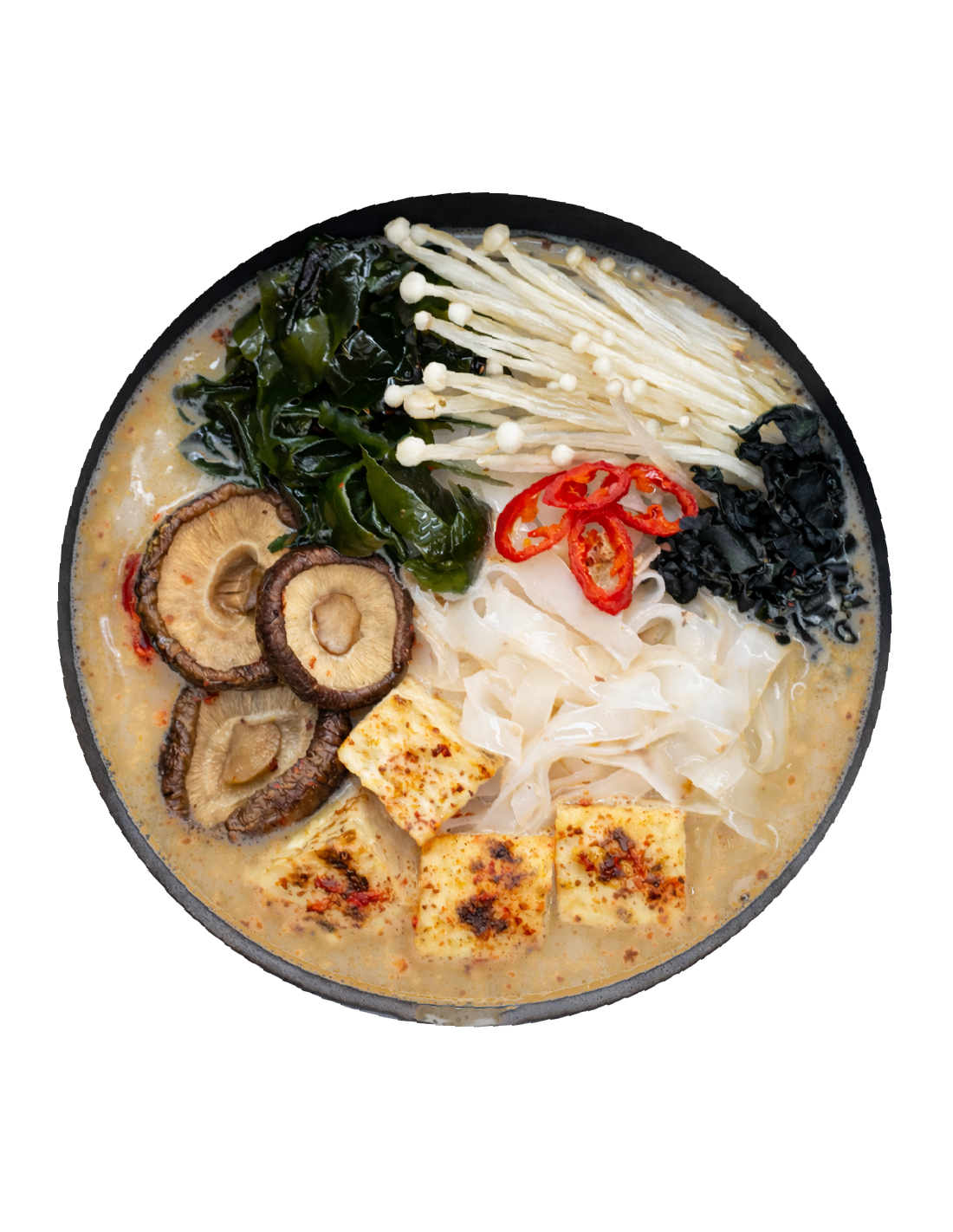 Roślinna zupa ramen inspirowana kuchnią Japonii – kremowa, głęboka w smaku i gotowa w kilka minut. Z tofu (naturalne białko), grzybami shiitake i wodorostami wakame. Wegański ramen instant, który syci jak pełnowartościowy posiłek – bez sztucznych dodatków.